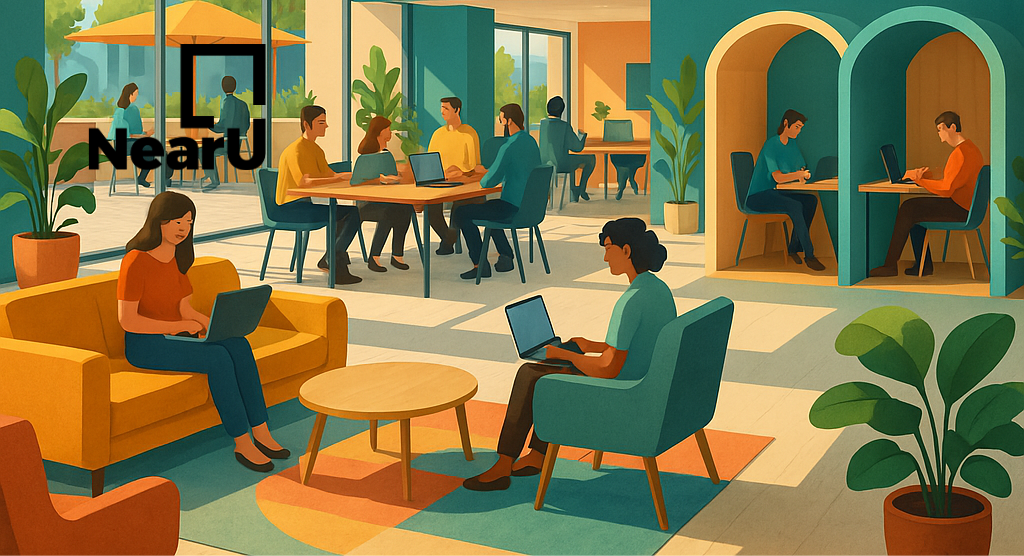 Most flexible workspaces offered by NearU already follow this mixed approach, eradicating the need to allocate big budgets to in-house redesign projects; for example, one of our featured spaces in the heart of Paris blends collaborative open areas with individual pods. All available to book now on our app.