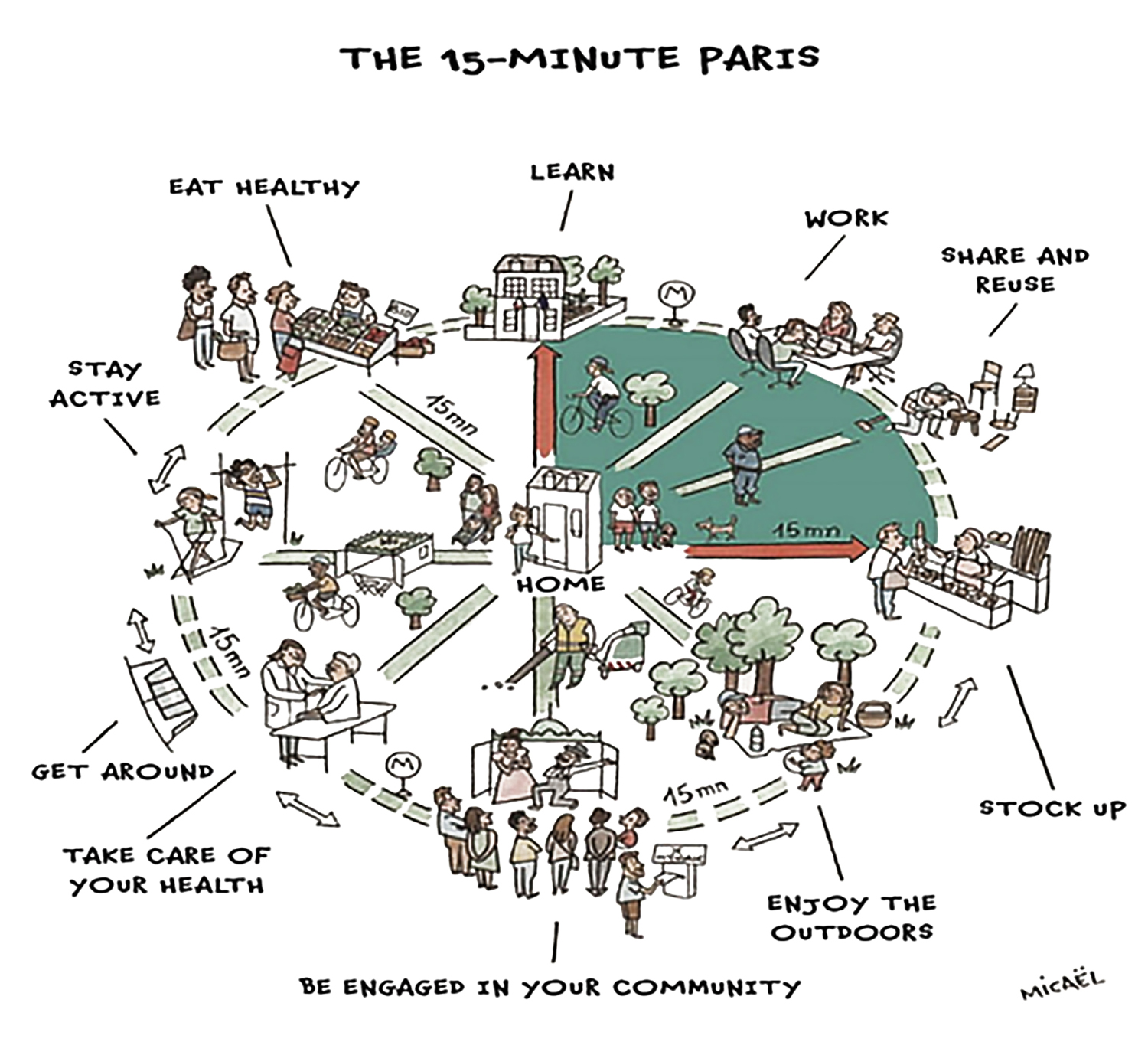 The idea of a 15-minute city is simple: it is a city where everything you need is within a 15-minute walk or bike ride from your home. This means that residents have access to essential amenities, such as grocery stores, schools, parks, and healthcare facilities, without having to rely on cars or public transportation. By creating compact, walkable neighbourhoods, 15-minute cities aim to reduce the environmental impact of urbanisation, improve public health, and enhance social interaction. Most importantly, they are a tool to provide more choice, not reduce it.